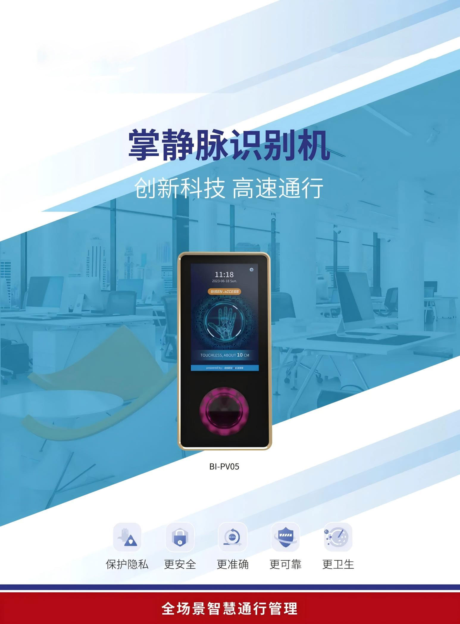 手掌靜脈識(shí)別是非接觸式的,只需將手掌放在掃描儀上方7~14CM處,有效地防止因?yàn)榻佑|導(dǎo)致的細(xì)菌或病毒的傳播。