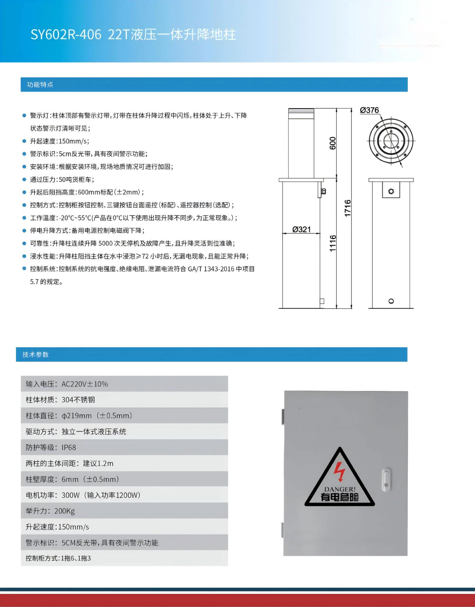 ● 具有電磁閥接口,停電時可使升降柱下降;