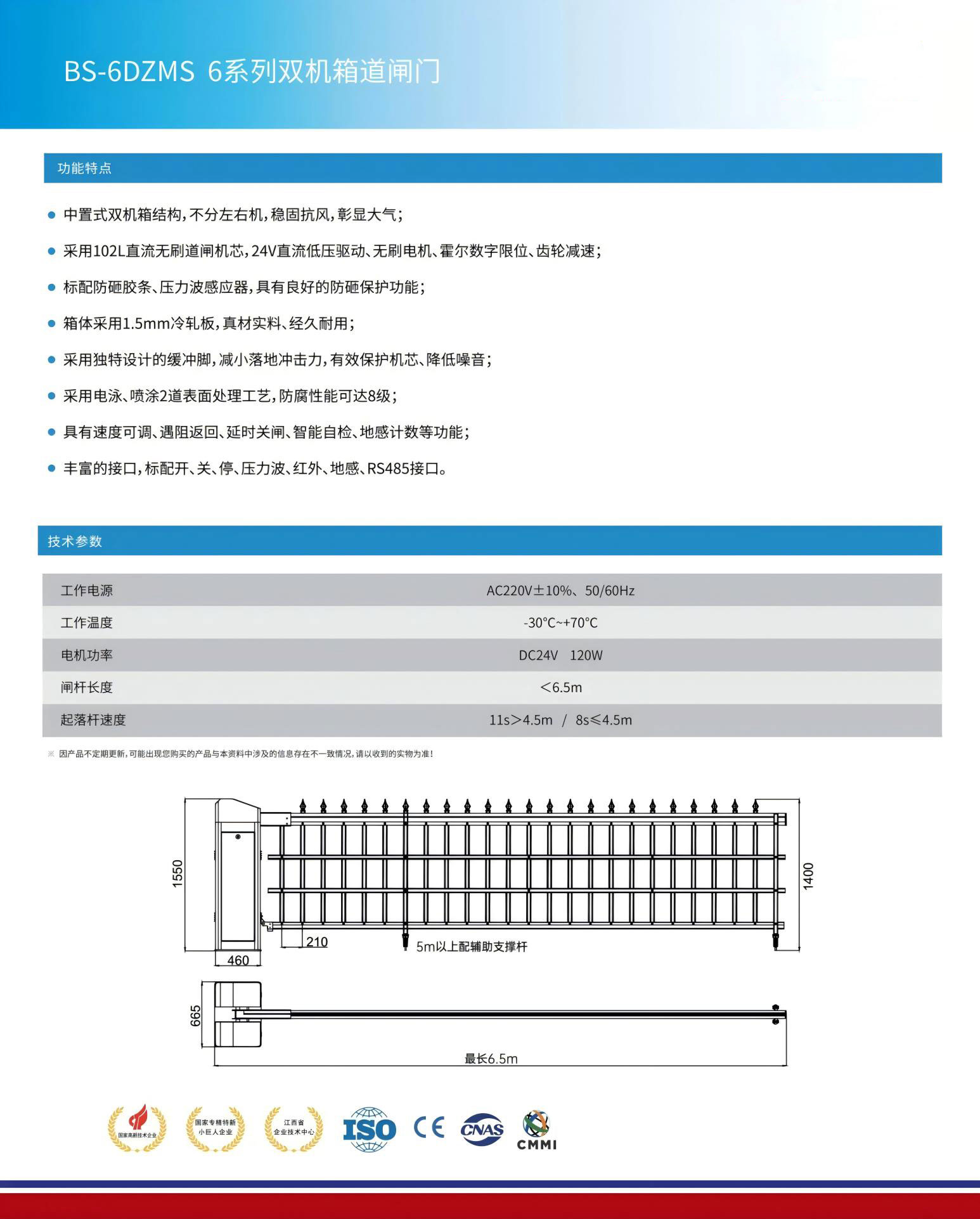 ● 采用102L直流無刷道閘機(jī)芯,24V直流低壓驅(qū)動、無刷電機(jī)、霍爾數(shù)字限位、齒輪減速;
